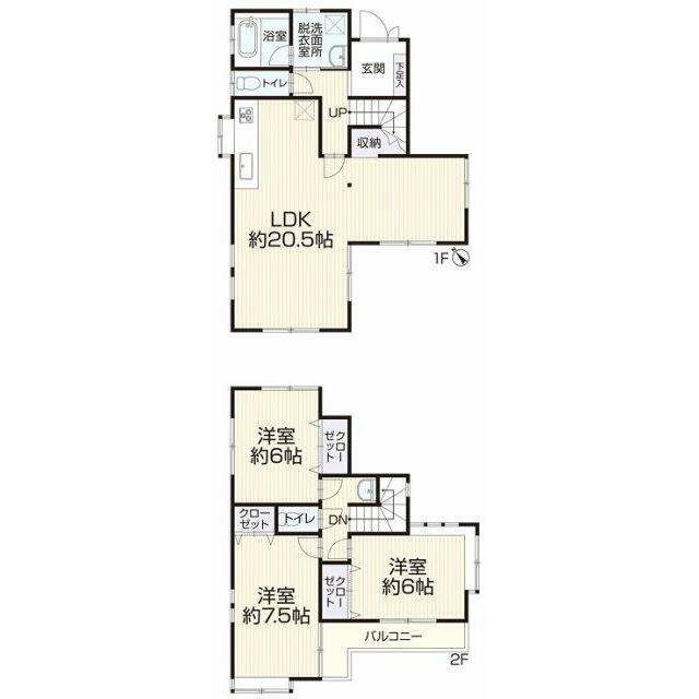 | 間取り(内訳) | 3LDK(LDK20.5、洋6×2、7.5) | 建物面積 | 96.87㎡ |